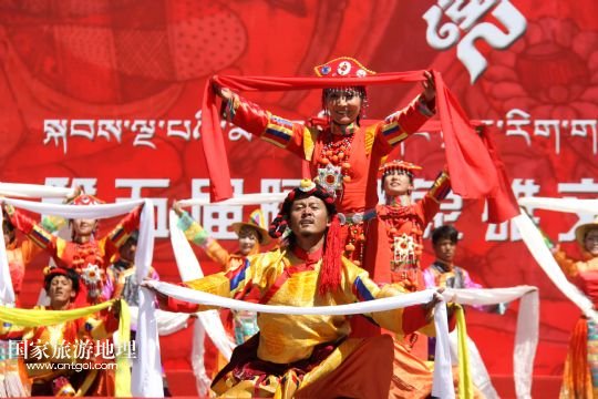 國(guó)家旅游地理 西藏阿里8月3日訊 8月3日,當(dāng)?shù)厝罕娫陂_(kāi)幕式上表演富有民族特色的歌舞《美麗的阿里》。當(dāng)日,西藏阿里地區(qū)第五屆象雄文化旅游節(jié)在獅泉河文化廣場(chǎng)開(kāi)幕。此次文化旅游節(jié)將舉辦阿里象雄文化研討會(huì)、旅游紀(jì)念品展覽、攝影展等十余項(xiàng)活動(dòng)?! ? 新華社發(fā)(蔣先平 攝)