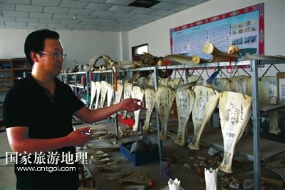 抱著十分好奇的心態(tài),記者決定前去探訪。在鄂托克前旗宣傳部一位工作人員的指引下,記者來到了鄂托克前旗民族職業(yè)高中的教學樓辦公室,見到了哈斯達來老師。因為整個辦公室內有許多骨雕、沙雕等許多藝術作品,所以看上去有些凌亂。