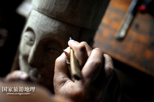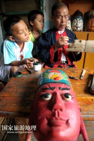 譚圣慈老人今年72歲,從22歲開始學(xué)雕刻儺戲面具,迄今,已經(jīng)堅持了50年。老人說,他制作的面具因工藝精湛,造型優(yōu)美,曾吸引遠(yuǎn)方的客人高價購買。但是,卻少有人來學(xué)習(xí)面具的雕刻與制作。儺戲于2006年被列入非物質(zhì)文化遺產(chǎn)名錄之后,政府加大了保護(hù)力度,但因為面具的制作周期長、工序復(fù)雜,銷售渠道少等原因,仍無法吸引年輕人學(xué)習(xí)雕刻的興趣。為了收到心儀的徒弟,傳承這獨(dú)到的技藝,他到處發(fā)布免費(fèi)收學(xué)徒的信息。在他的堅持下,今年暑期,鄉(xiāng)里有兩名對面具制作感興趣的男孩來到譚圣慈身邊學(xué)藝。老人高興地說:“我給他們講很多故事,就是希望他們能對此提起興趣,愛上木面雕刻,別讓這老手藝失傳了。” /新華社發(fā)