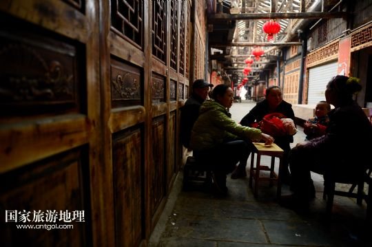 國家旅游地理 湖北恩施3月28日訊 3月27日,人們行走在慶陽古街上。喧囂的人群,吆喝的商販,肩挑背馱的漢子,行色匆匆的婦孺……位于湖北西部山區(qū)的恩施土家族苗族自治州宣恩縣椒園鎮(zhèn)慶陽古街,以其200余年久遠(yuǎn)悠長的歷史重復(fù)演繹著土家人的生活,展示著“土家商貿(mào)活化石”的獨(dú)特魅力。