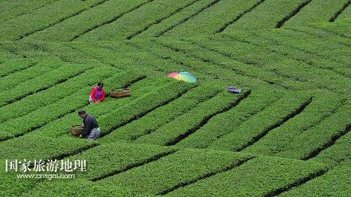 4月27日,柳溪村的村民在村內(nèi)的茶園采茶。