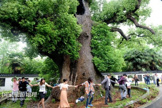 國(guó)家旅游地理 江西上饒5月18日訊 5月17日,游客在江西省德興市??阪?zhèn)??诖迩旯耪僚酝嫠!=魇〉屡d市??阪?zhèn)??诖逵幸豢?800多歲“高齡”的巨型古樟樹(shù),歷史上曾遭受過(guò)多次雷擊、火災(zāi)等,其中最近的一次發(fā)生在2010年10月1日,由于村內(nèi)孩童進(jìn)入可容納幾十人的樹(shù)洞內(nèi)玩耍,不慎引發(fā)火災(zāi),致使大火從樹(shù)洞里燒起,讓這棵千年古樟幾近滅頂。此后,當(dāng)?shù)卮迕褡园l(fā)捐款近6萬(wàn)元,請(qǐng)來(lái)有關(guān)專家救治。經(jīng)過(guò)近4年的精心護(hù)救,如今這棵千年古樟再度逢春,枝繁葉茂,吸引了各方游客前來(lái)觀賞。 /新華社發(fā)(卓忠偉 攝)
