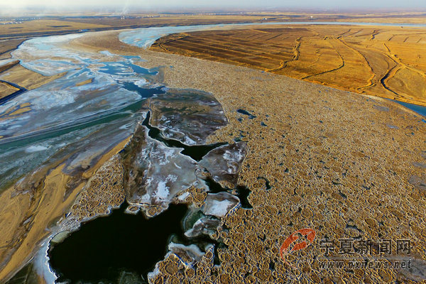 黃河銀川興慶區(qū)段流凌浮動。
