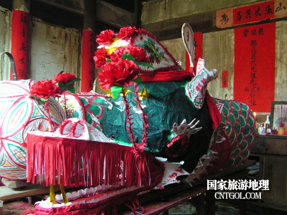 “老龍”在中國(guó)四堡雕版印刷展覽館門(mén)前慢悠游弋。鄒善水 攝