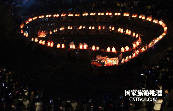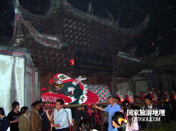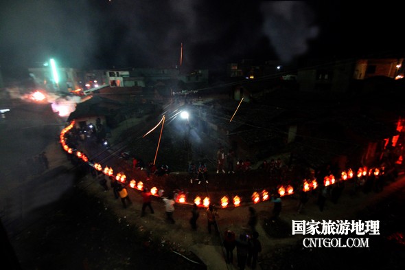 2月18日入夜,春雨霏霏。在光裕堂祖祠祭龍頭畢,鄒姓村民紛紛肩抬慶燈到祖祠接成220多米長(zhǎng)的“龍”身。三聲銃響,游龍時(shí)而在村間慢悠游弋,時(shí)而在村道滯拔狂走,火紅的燭光伴著霏霏春雨,讓?xiě)c燈“龍”絢麗多姿,展示了“紙包火”的奇跡。 游“龍”所經(jīng)之處,鞭炮和禮花聲不絕于耳,祈求五谷豐登、吉祥如意。街巷人山人海,熱鬧非凡,一派花燈游龍慶豐收狂歡鬧元宵盛況。 吸引了海內(nèi)外游客及四鄰八鄉(xiāng)的萬(wàn)余群眾紛紛前往觀看。